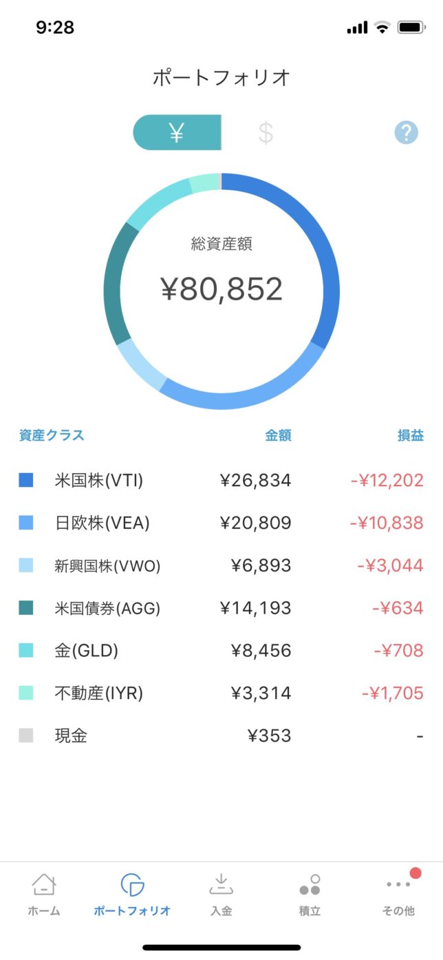 | 金 (GLD) | 8,456円 | ー708円 | ー7.7% |